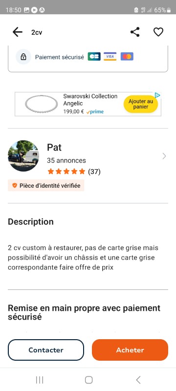 Ce qui est vendu en l'occurrence, c'est la carte grise à 350 euros, pas la caisse...car on a pas le droit de vendre des CG seules...ça fait cher la CG...je crois que je vais mettre ma deuche en vente à 18000 euros...un pigeon se lève tout les matins !