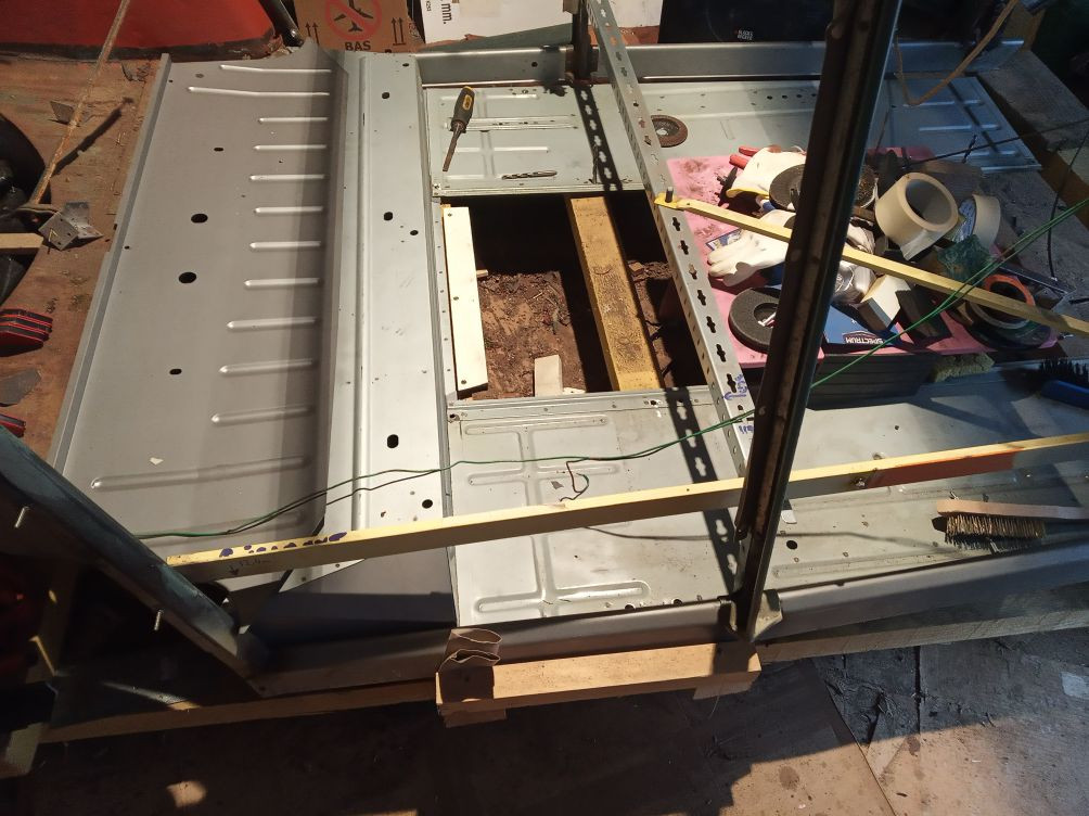 avant Noël j'avais posé le deuxième bas de caisse, puis commencer à placer les tôles à blanc juste pour voir.