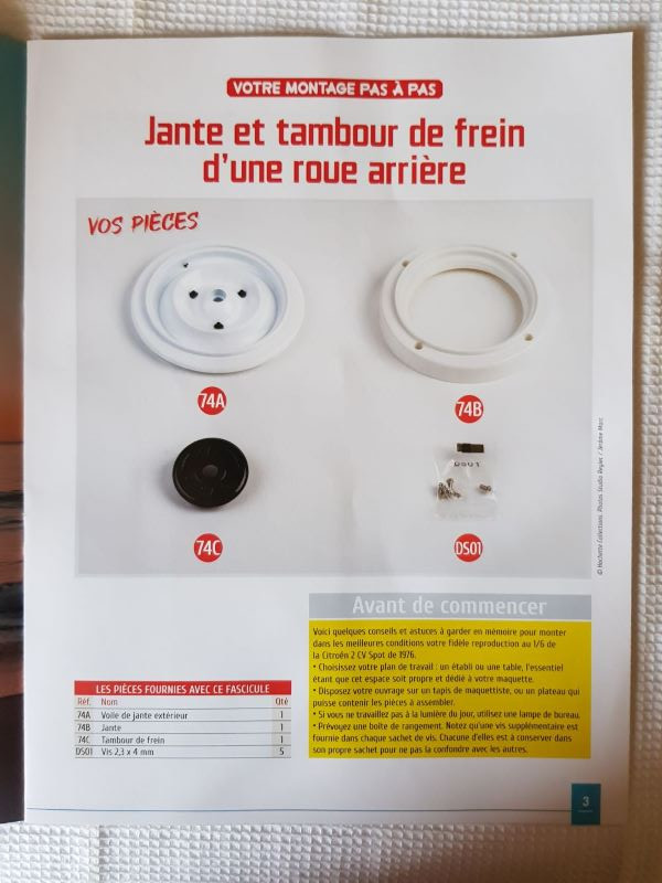 Jante et tambour de frein de la seconde roue arrière Je n'ai pas pris de photos car ce sont les mêmes que pour le fascicule n° 74