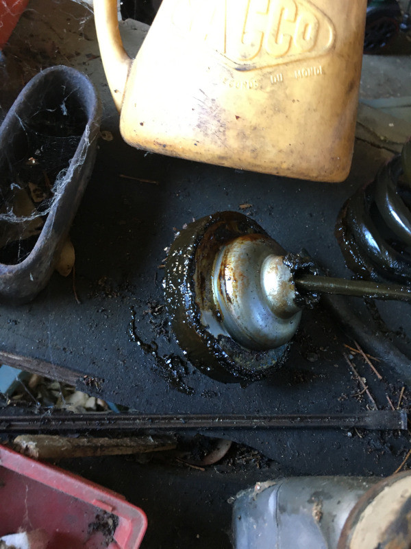 J'ai aussi dessoudé le couvercle d'un pot de suspension pour inspecter l'intérieur. Les coupelles et les ressorts baignaient dans la graisse, tout ce beau monde semble en bon état.