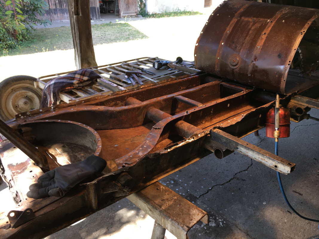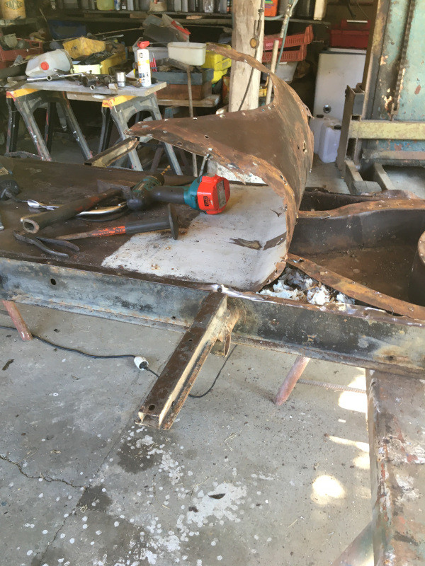 Suite, mardi : dépointage de ladite tôle rouillée, pour inspection du châssis.