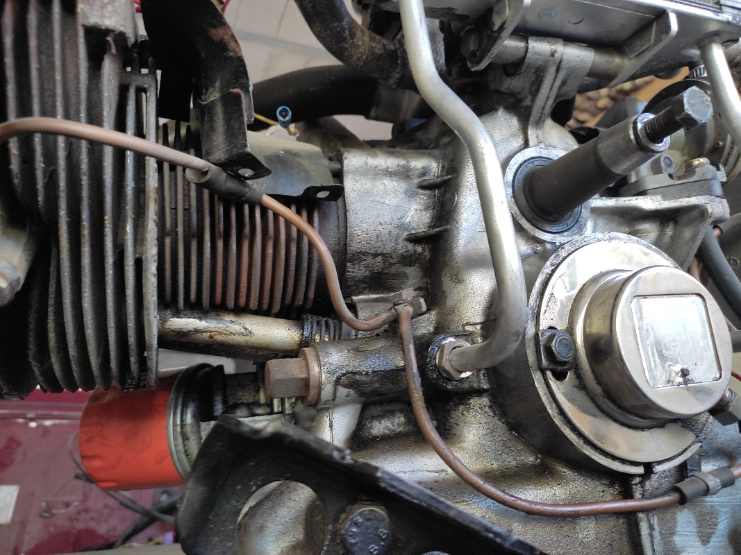 Comme prévu retour sur ma dépose moteur, joints lunettes c'est sûr, pas de fuite apparente au tuyau de graissage des culasses mais vis des tubes du radiateur d'huile desserrées.
