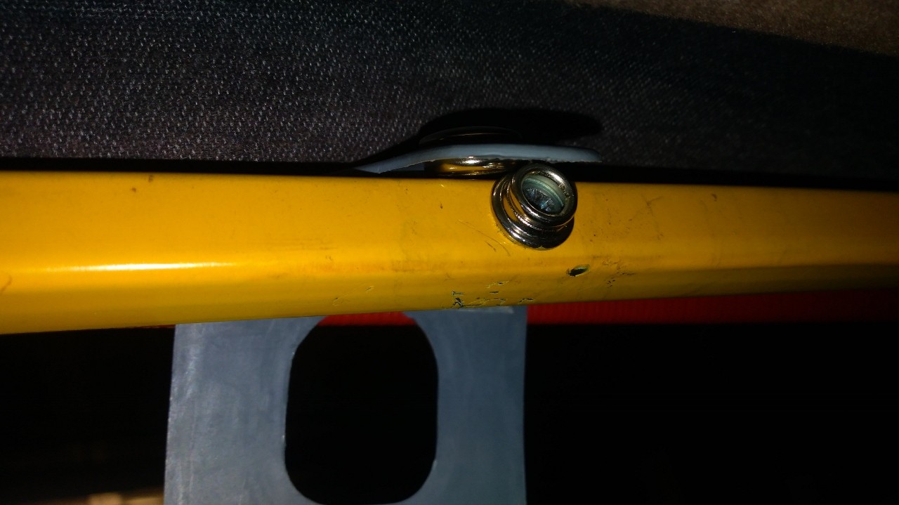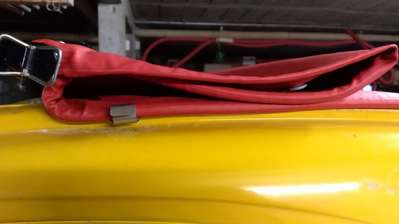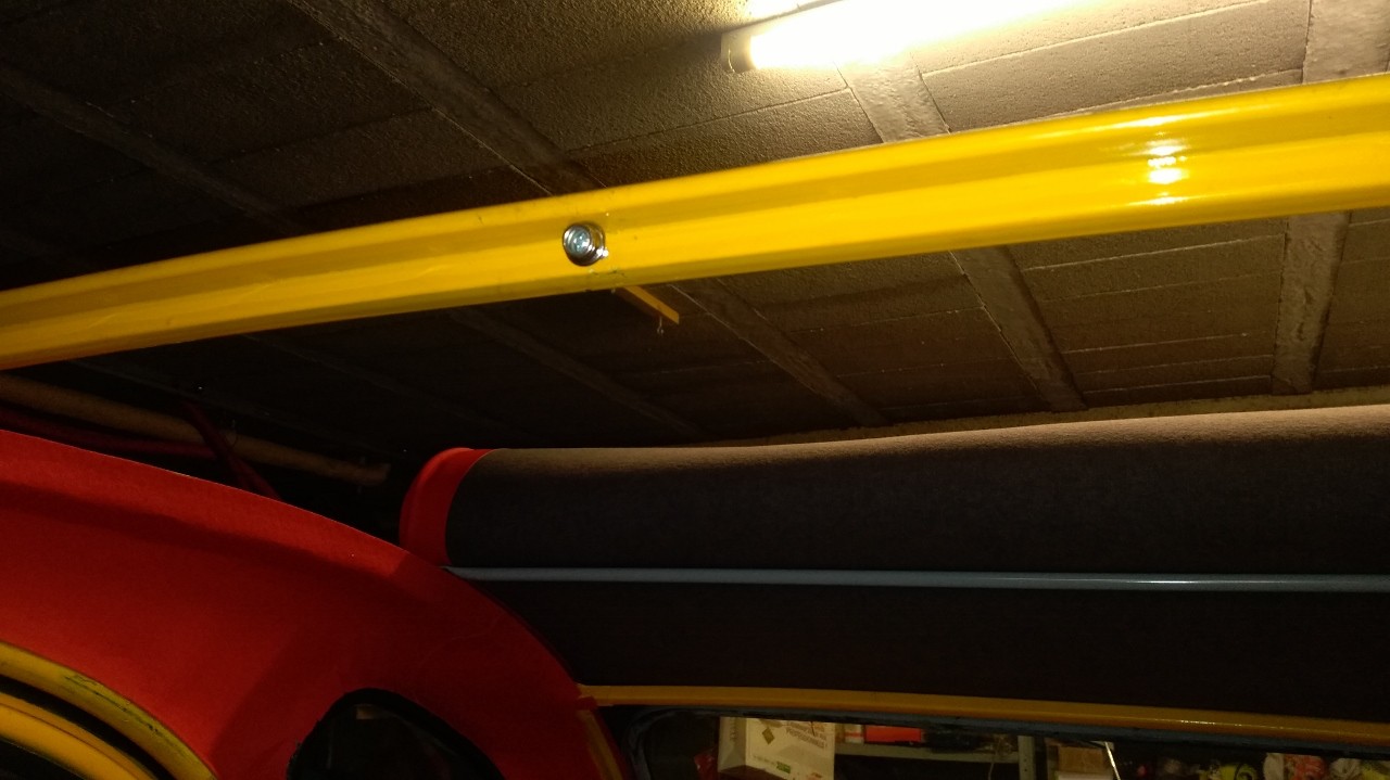 barre vidée de sa sangle emplacement envisagé (en jaune) cet endroit me paraitrait guère recouvert par la capote une fois fermée autre question je dois bien installé un bouton pression à cet emplacement sur ma capote afin de pouvoir faire tenir la capote une fois ouverte complètement?