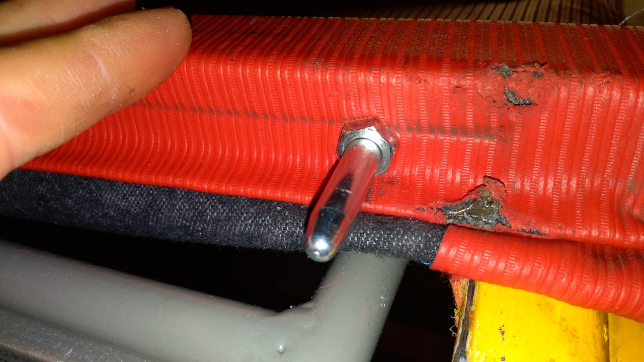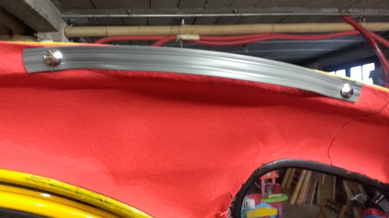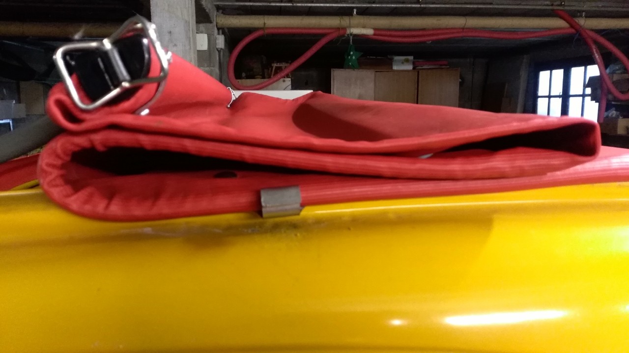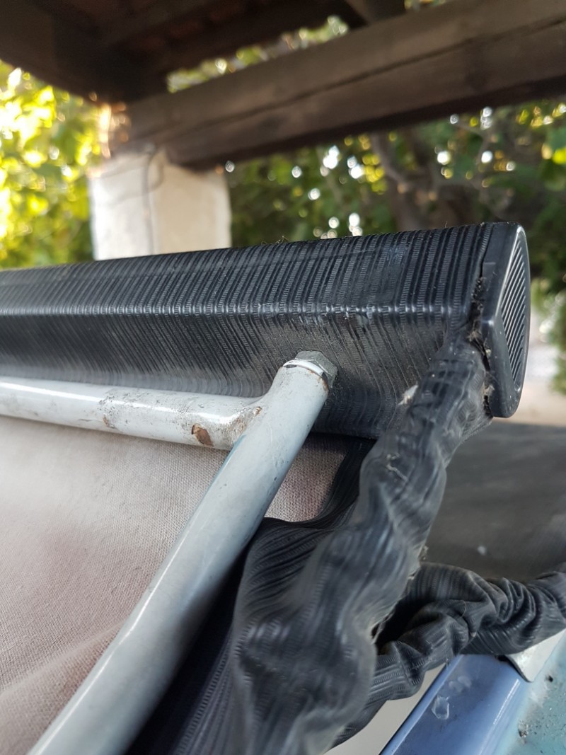 barre vidée de sa sangle emplacement envisagé (en jaune) cet endroit me paraitrait guère recouvert par la capote une fois fermée autre question je dois bien installé un bouton pression à cet emplacement sur ma capote afin de pouvoir faire tenir la capote une fois ouverte complètement?