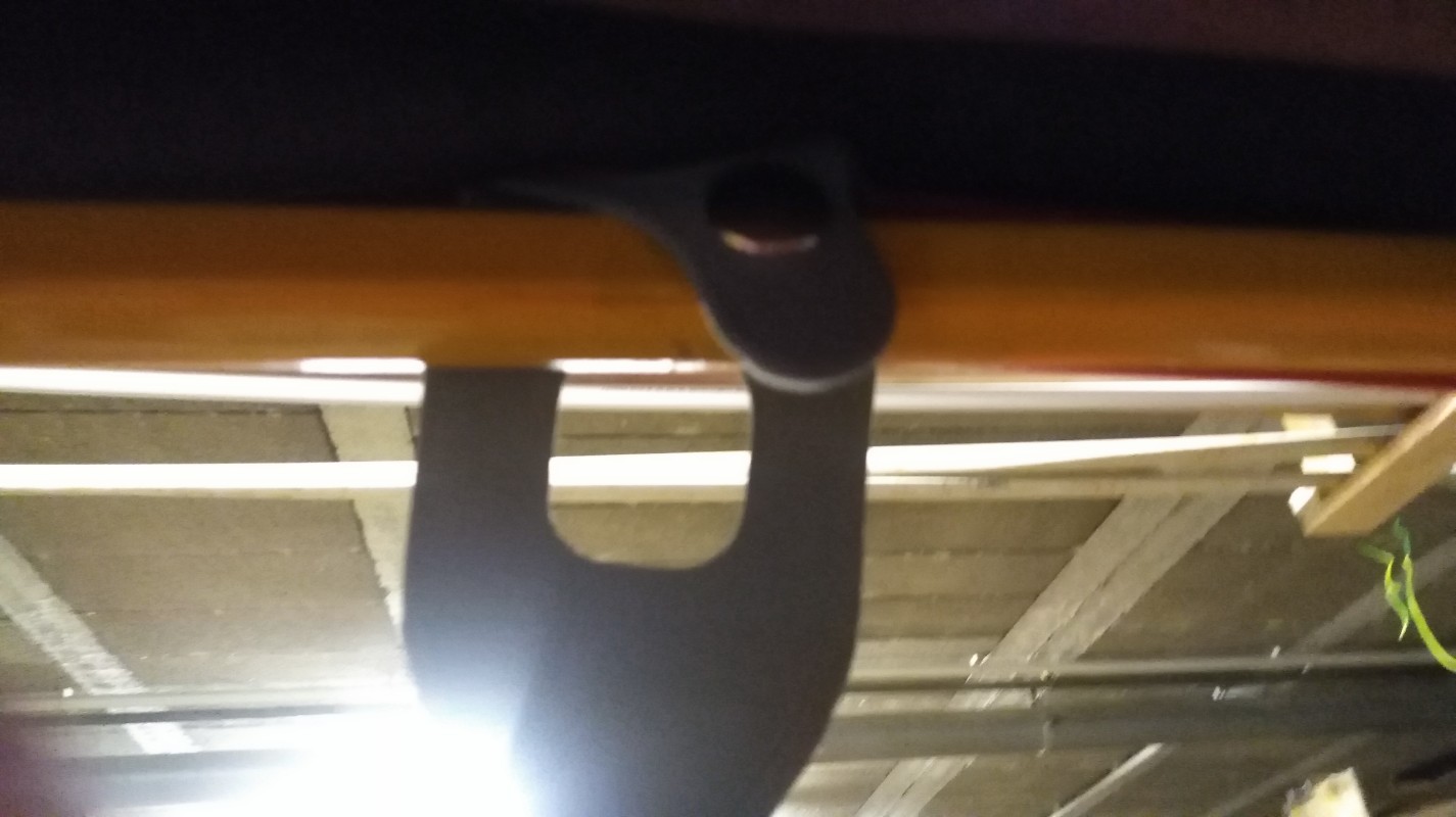 les attaches de la barre installée les attaches du portiques installés coté haut de porte, taraudage et vis Sangle centrale installée L'ensemble: il me reste les autres sangles et les boutons pressions à fixer j'ai des questions pour l'installation et si vous avez des photos prise de dessus et dessous et de derrière qui montrent les sangles installées en ouverture complete je suis preneur...