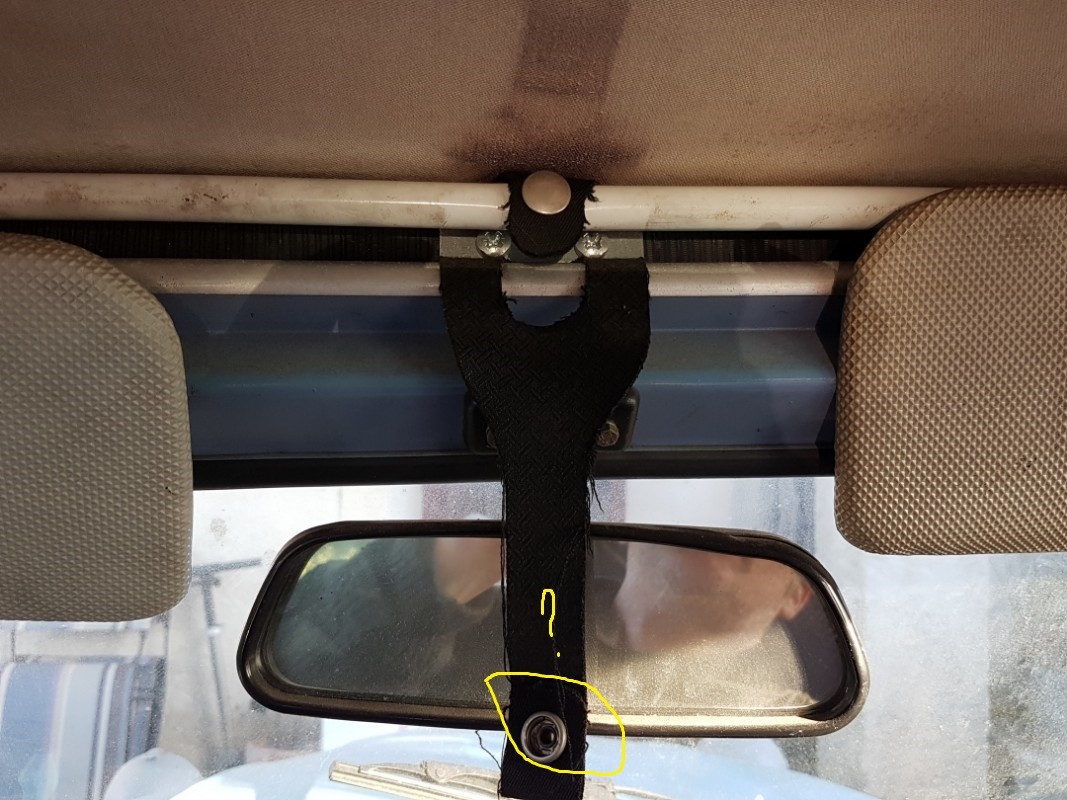La sangle fixée à la barre de la capote, même coté ou se trouve les pions...