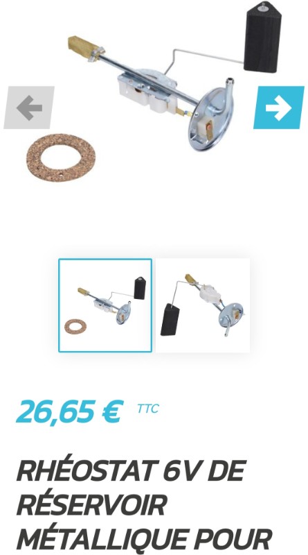 Certainement pour les gens qui veulent installer une jauge électrique.CHARLYSTONE a écrit : ↑23 sept. 2023, 19:29Oui je sais, mais sur le site de Mecatechnic, que Éric a trouvé, il est marqué en bas que la jauge en 6v peut être monté sur des 2CV de 51 à 61lucky40 a écrit : ↑23 sept. 2023, 17:15L'AZAM est de 1966CHARLYSTONE a écrit : ↑23 sept. 2023, 17:09 C'est bizarre, mais les 2CV de 1951 à 1961 n'avaient pas de jauge à essence, mais une jauge gradué dans le réservoir![]()