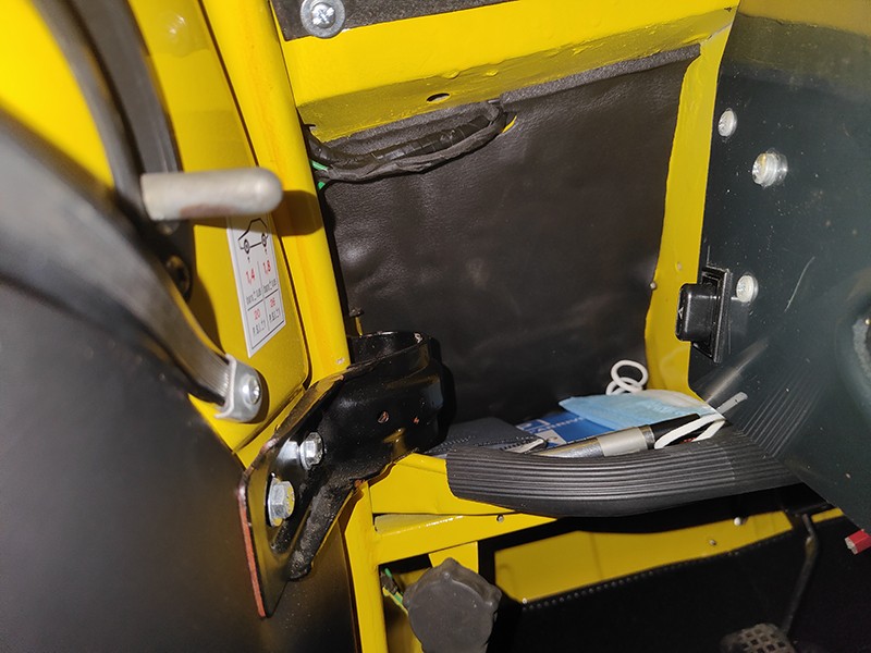 Puisqu'il me reste encore un peu d'isolant (j'ai utiliser que la moitié du rouleau), je vais faire également le bas du tablier à l'intérieur jusqu'à la jonction du plancher pédale.