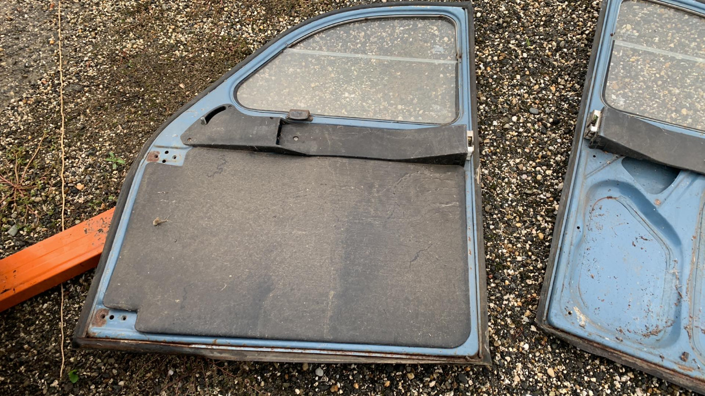 Par exemple, je viens ce matin d'aller récupérer deux portes pas bien belles, mais complètes (et plus récentes que le modèle que j'ai, mais j'ai compris qu'elles se montaient sur ma 2CV, moyennant quelques adaptations des serrures..)