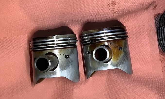 Comme prévu, les pistons sont cuits, deux segments sont cassés sur le piston droit (celui du haut et celui de bas), les deux chambres sont glacées, je viens de commander un kit de deux pistons avec chambres et segments.