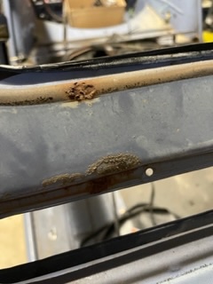 Tes bas de caisse ont l'air en mode gaufrette/crêpe dentelle, si ça fait des miettes, je remplacerais sachant que si tu roules sur route mouillée ça ne fera que s'aggraver et ce serait dommage d'avoir commencé une restauration en ne traitant pas les zones critiques. C'est juste mon avis.