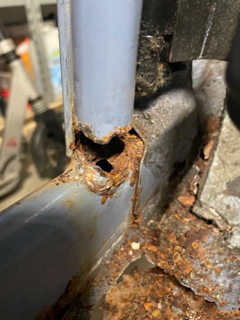 Et j’ai découvert aussi un bon trou de rouille sur le montant avant droit.