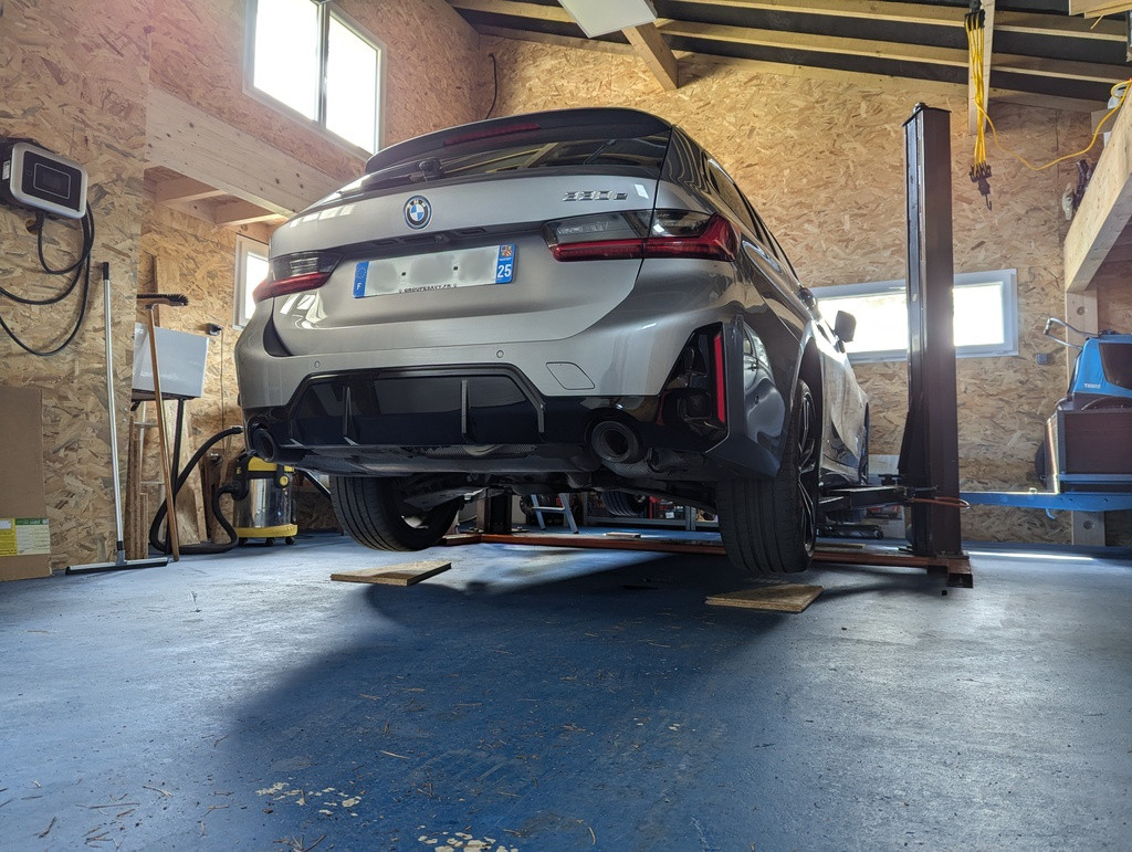Je dois descendre au max les tampons aux extrémités des bras, mais ensuite les bras sont près de toucher le bas de caisse de la voiture.