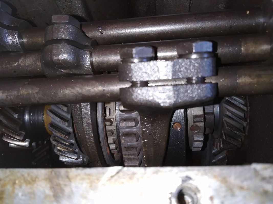 Cette semaine, j'ai acheté une boîte de vitesse qui me semble en bon état. Les coulisseaux étaient bloquées en raison de l'huile séché. Il y a seulement celui du surmultiplié qui est resté en l'état. Je pense que les garnitures sont prises sur un des tambours car c'est impossible à tourner d'un côté. Il faudra que je trouve le temps pour y regarder un peu mieux.