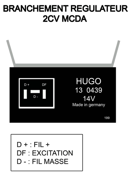 - branchements de régulateur correct couleur bleue sur D+ blanc sur - excitation sur DF (continuité vérifiée)