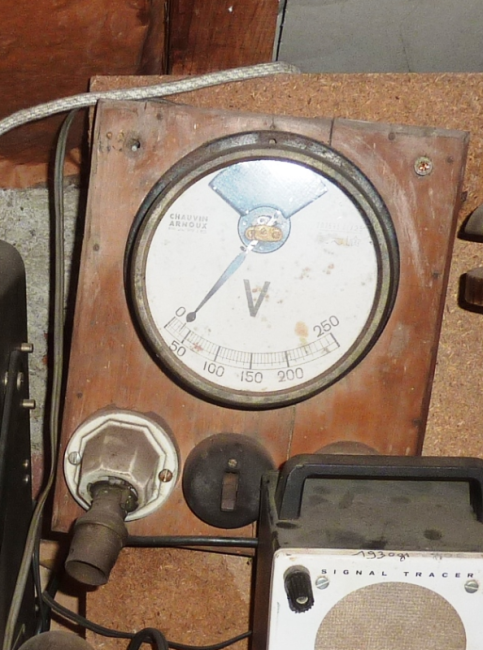 Avec un beau voltmètre d'époque en prime ! Si j'utilise une tension plus élevée (115V), c'est parce que l'isolement est davantage mis à l'épreuve, si je puis dire, qu'en 6V 15W, par exemple..