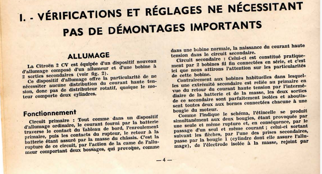 Comme promis, voici les pages qui décrivent l'allumage de la 2CV :
