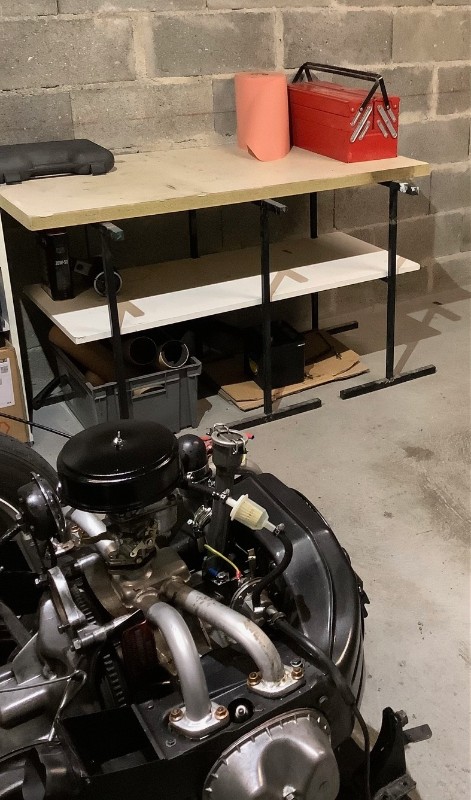Préparation d'un établi pour démonter le moteur :