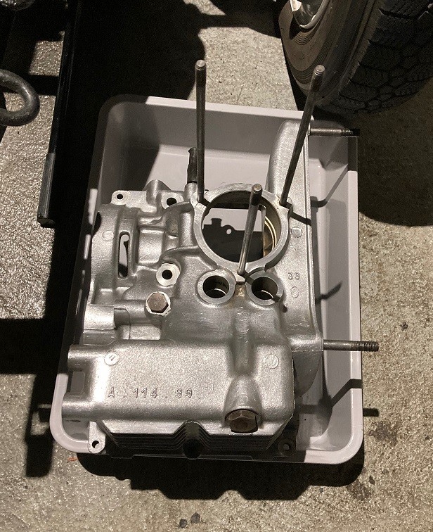 Le moteur est sur l'établi, c'est léger, ou je suis fort, j'attends l'outil pour retirer le rotor de la dynamo, je pourrai attaquer ainsi le démontage du moteur. En attendant je vais m'occuper des culasses, démonter les soupapes, les nettoyer et si elles sont bonnes, les roder.