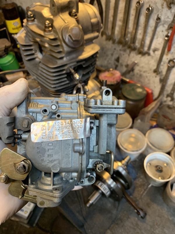 -> démontage complet, barbotage Meca 33 aux US à 55 degrés, soufflette partout, remontage méthodique, réglage du niveau de cuve, vérification de l’étanchéité du pointeau, vérification visuelle de tous les gicleurs air et essence, mise en place de quatre joints à lèvres gris dans les épaulements prévus, sur les axes de papillons des deux corps, changement du joint de couvercle des cuves ( identique par superposition à celui d’origine ) ; démarrage correct, mise en température progressive, et…