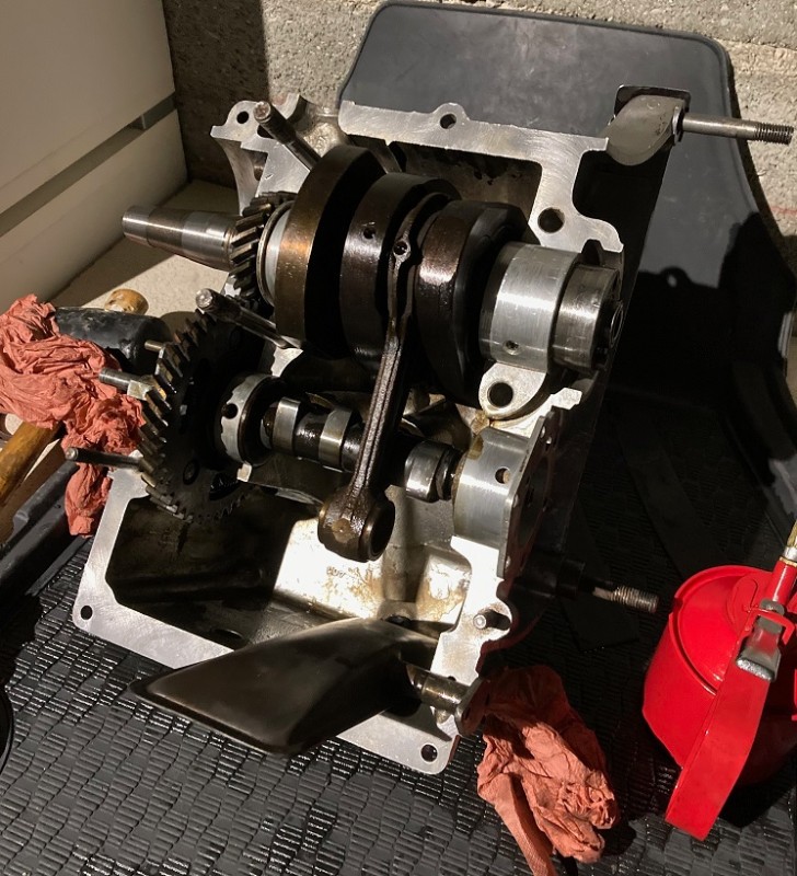 Moteur démonté, c'est en fait très facile ! le vilebrequin est sans jeu, toutes les dents sont parfaites, les cames ne sont pas usées et elles sont bien lisses. Le moteur est bon ! je suis rassuré.