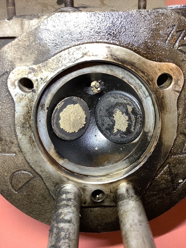 Comme prévu, les pistons sont cuits, deux segments sont cassés sur le piston droit (celui du haut et celui de bas), les deux chambres sont glacées, je viens de commander un kit de deux pistons avec chambres et segments.