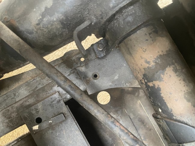 Sur ma 2CV6 de 85, il semble manquer les butées des bras de suspension avant (voir photo). On peut voir un fer plat soudé et cintré qui vient directement taper sur le châssis, ce dernier étant un peu abîmé à cause de ces chocs. Faut-il rajouter une butée au niveau du trou d'écrou ? Si oui, quel modèle, plat ou en demi-lune :