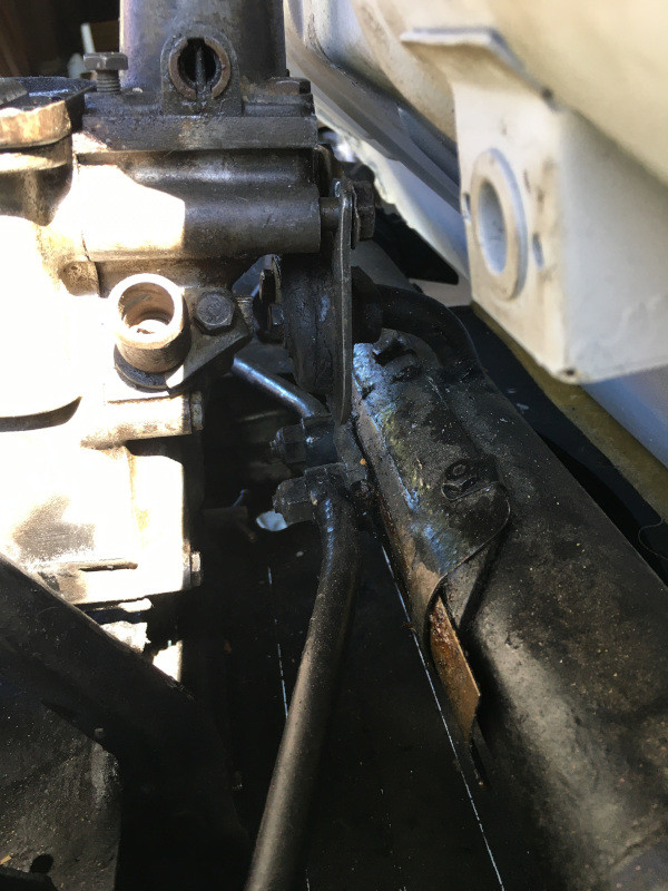 Tous les éléments en-dessous étaient plus ou moins corrodés, j'ai du démonter la commande des vitesses, dont le levier était bloqué par l'oxydation de son guide !