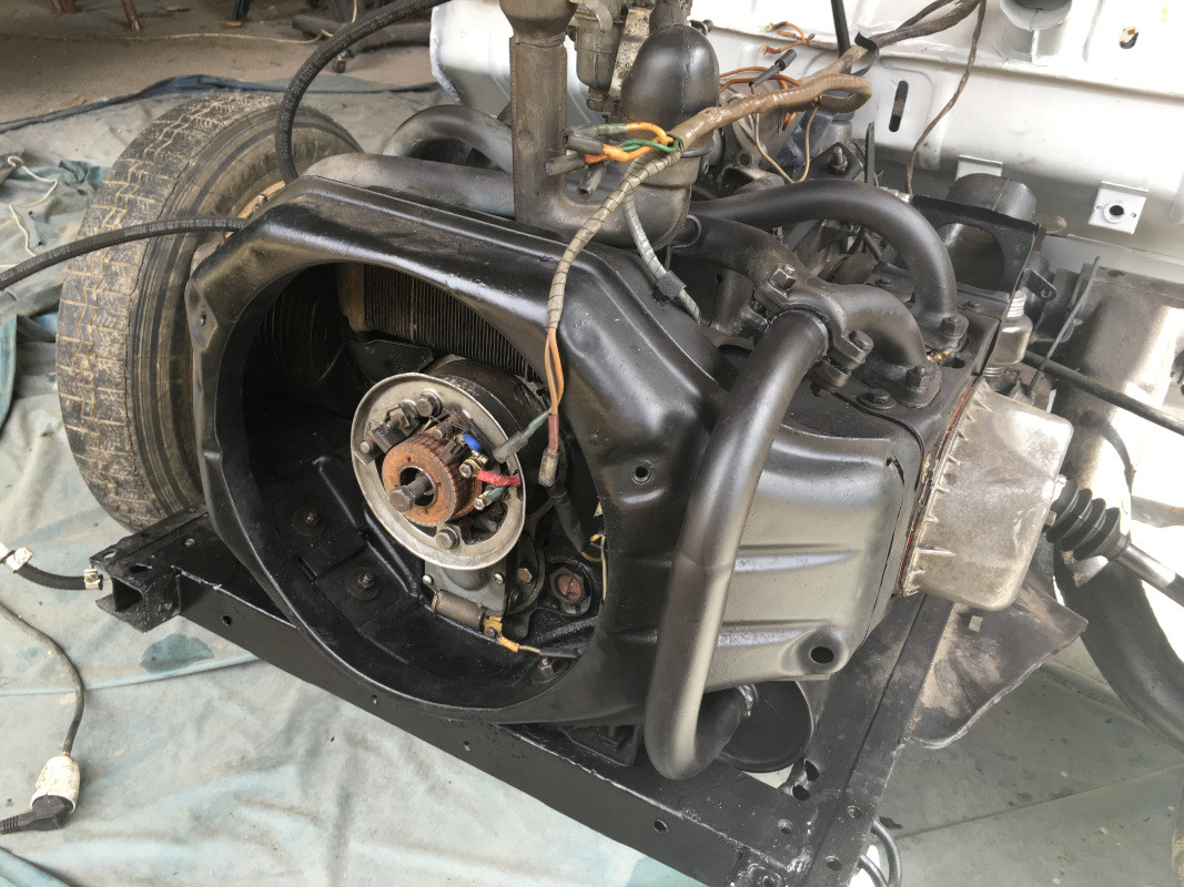 Après un peu de nettoyage et de peinture (en commençant par l'apprêt, bien entendu !) des petites pièces, dont les pédales et la grille du ventilateur, pour une fois en excellent état, un seul point de soudure fut nécessaire, j'ai profité d'avoir les mains sales pour faire de la mécanique !