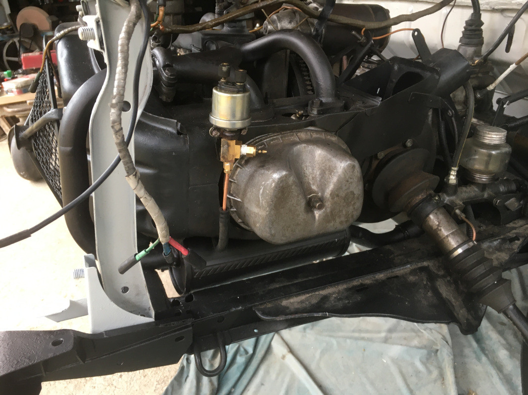 Le problème, c'est que sur un moteur de 2CV 425cc, il y a peu d'endroits où l'on peut faire un "piquage" sur la circulation d'huile. On peut le faire sur un raccord du réfrigérateur d'huile, sur un couvercle de culasse (pour le thermomètre) ou à l'emplacement du (futur) mano-contact de pression d'huile, obturé par un bouchon fileté en 12x1,75mm (avant 1967), en 12x1,5 ensuite.