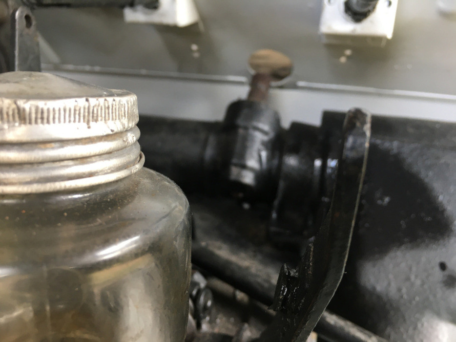 Perçage des points d'attache des ressorts des pédales, sur le plancher : Mise en place des pédales, des ressorts, et goupillé le tout : Après avoir réétudié le montage (il m'a fallu tourner une pièce intermédiaire en 12x1,175 pour y visser des manchons en 1/8" avec tubes à olives), j'ai réimplanté les sondes de température et de pression d'huile J'en ai profité pour monter la transmission de compteur, lubrifiée à l'huile de vaseline depuis 10 jours !