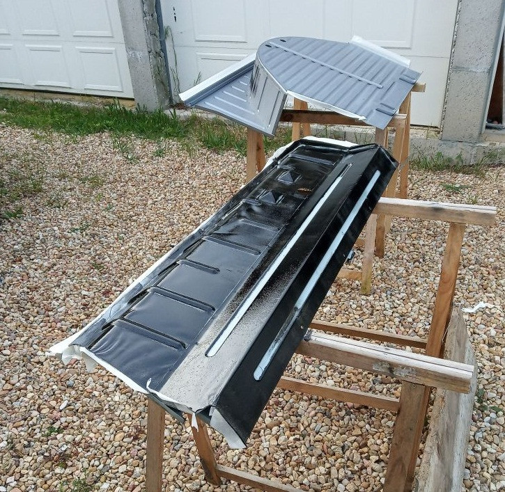 aujourd'hui j'ai terminé les 2 tôles, j'ai joué du pinceau et du rouleau mais le résultat est passable sans plus.