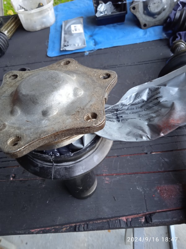 Une fois les vieux soufflets dégager et les cardans nettoyées avec du gazole pour enlever la vieille graisse on peut commencer en engager les nouveaux soufflets.