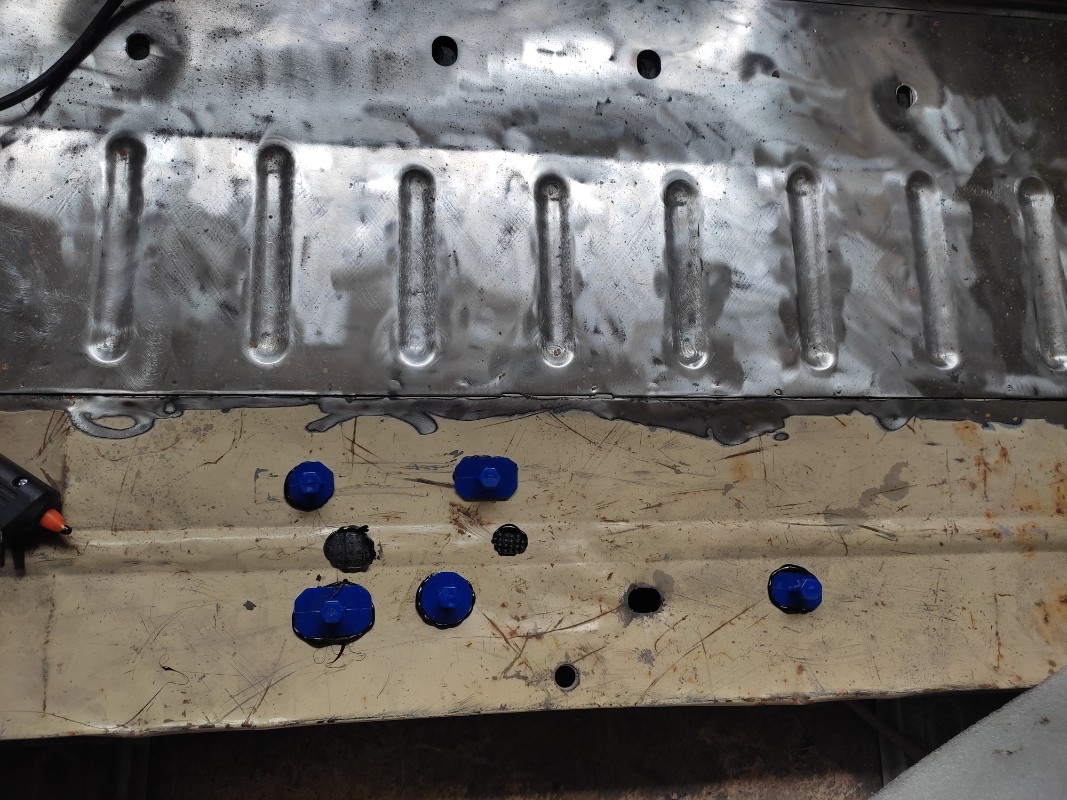 Sur ma Charleston j'avais passé de la cire dans les portières par les trous (vitres, poignées de portes....) après je me dis que si il y avait de la rouille ça ne doit pas être très efficace, je passerai sans doute du Rustol Owatrol, si ça déborde un peu à l'intérieur, ces pas trop grave il y a le panneau de porte, à l'extérieur il ne devrait pas y avoir de débordement. Lorsque j'ai posé ma feuillure, j'avais brossé, passé 2 couches de férose, le rouge c'est de l'apprêt de chez Carter Cash ou la fin de ma bombe de chez spray max , c'est soudé depuis plusieurs mois ça n'a pas l'air de bouger.