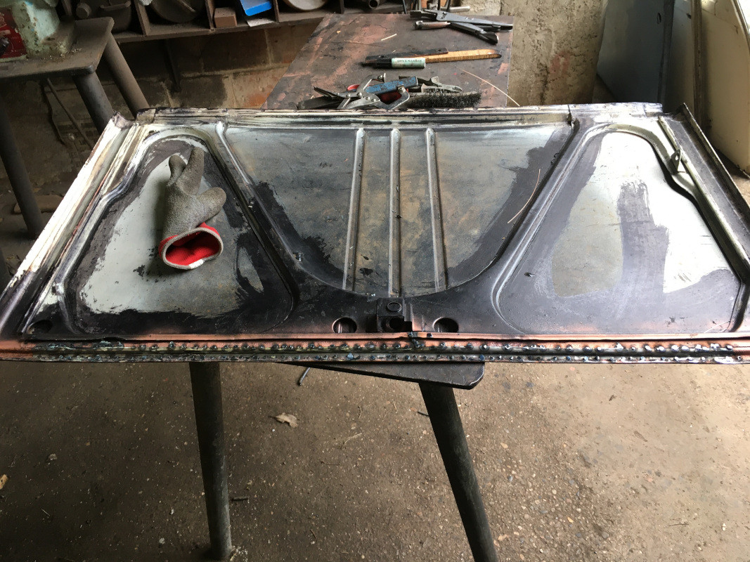 J'ai soudé les profilés de bas des portes, assez facilement, je dois le reconnaître : Le couvercle de malle a été remis en état d'une façon plus radicale, tant le bas était "dévoré" par la rouille, mais pas le profilé de joint qui est légèrement plus haut...