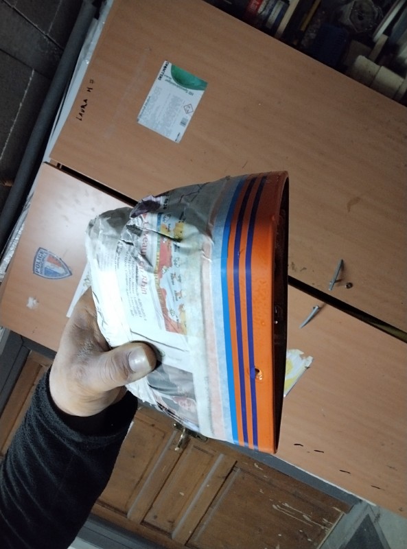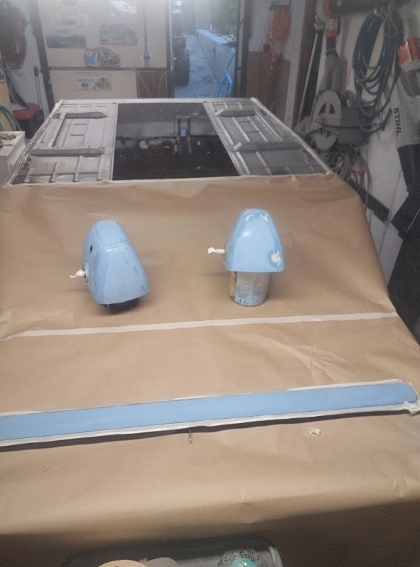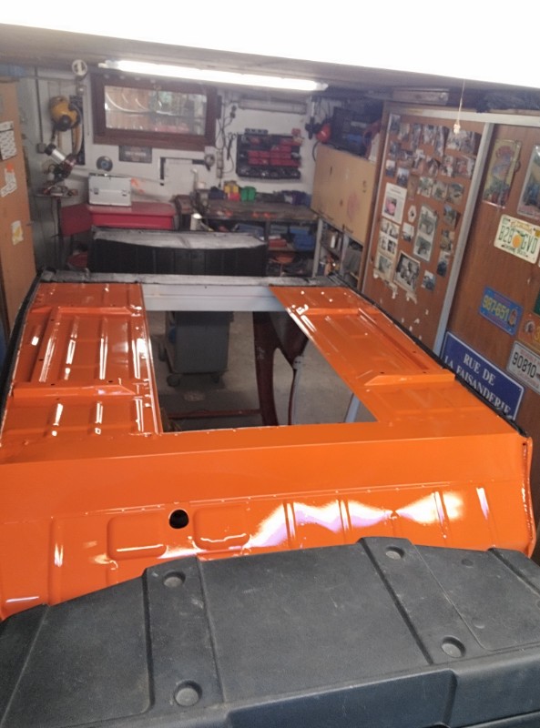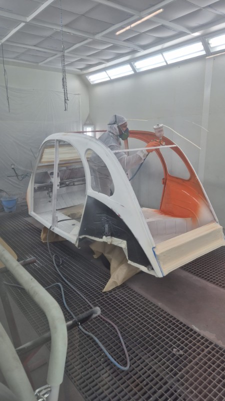 Mise en peinture jupe arrière et baie de pars brise blanc Semaine prochaine mise en cabine pour application de l orange puis ponçage 1200 a l eau puis application du vernis