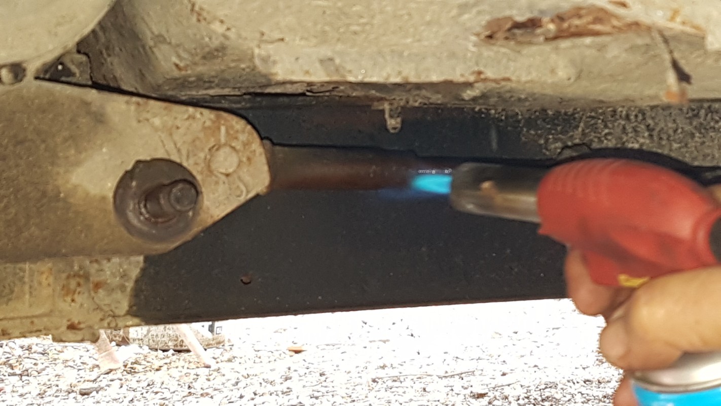 Forcément, le tirant était grippé et mon arrosage de dégrippant n'a pas été suffisant. Du coup, il a fallu chauffer !