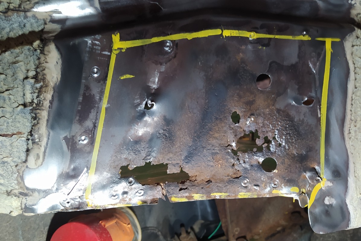 Bon bin j' ai taper plusieurs fois avec une massette et cale sous le volant sa bouge pas :( en attendant pour avancer sur le passage de roue arrière je compte découper en suivant le trait resouder une tôle identique puis resouder par dessus un nouveau suport de butée avec des soudure bouchon qu'en pensez vous ????
