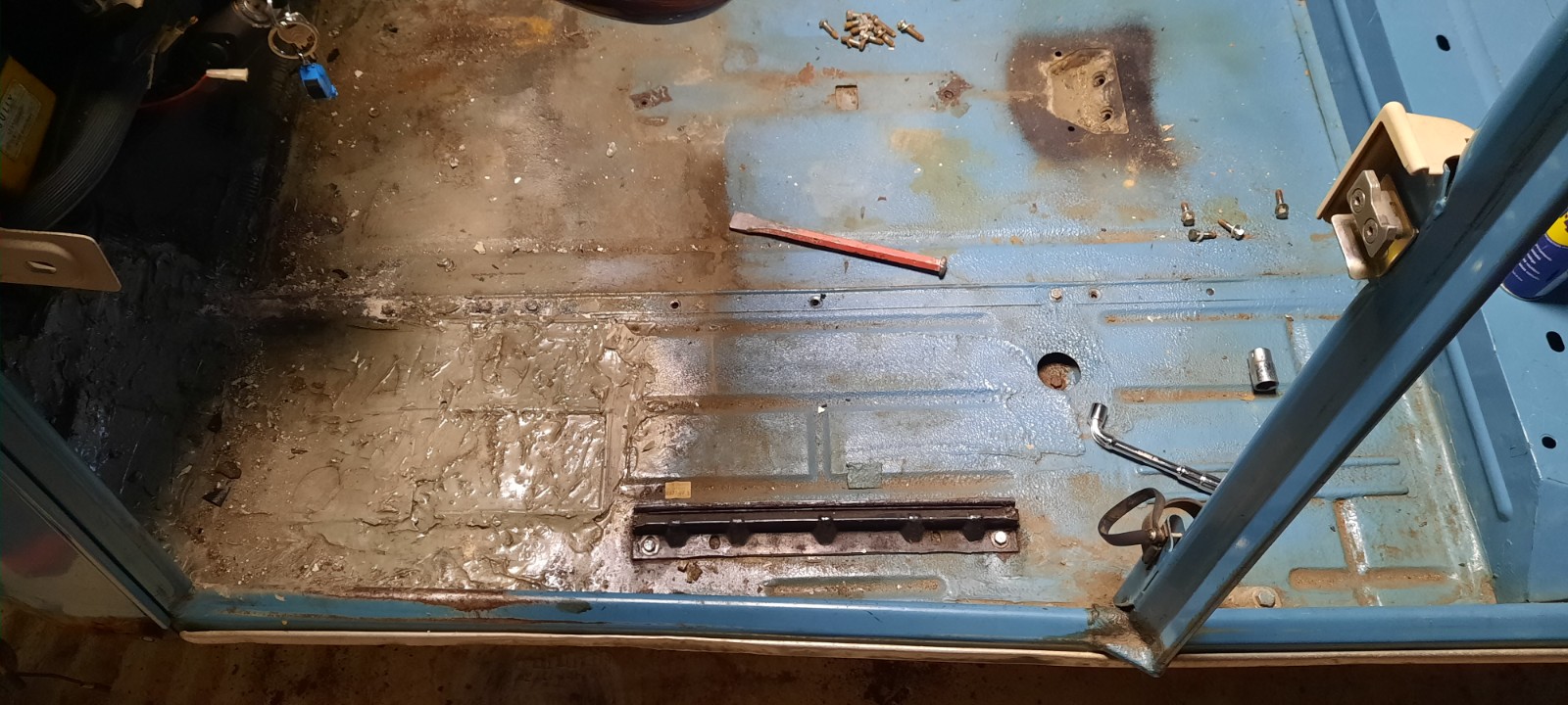 On changera probablement les deux planchers et le fond de pédalier ainsi qu'une demi-baie de pare-brise car c'est vraiment attaqué à ce niveau-là.
