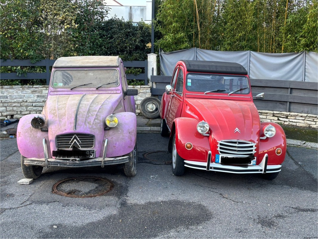 Apres avoir restauré il y a 10 ans ma première 2CV ( une 2CV6 de 1973 ) en rouge.