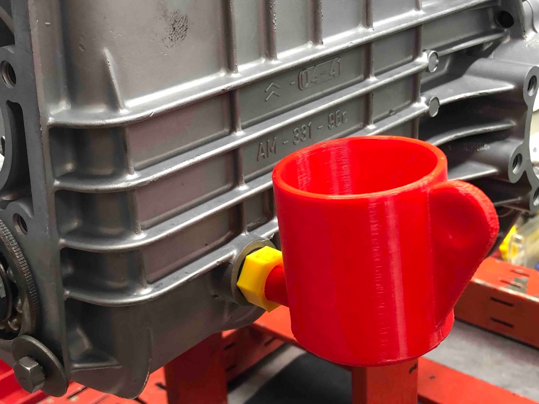 Et pour me démarquer de la concurrence, il faut faire preuve d'imagination et d'innovation. Je vous présente un entonnoir-réservoir pour faire le plein de votre BV à commande supérieure, sans en mettre partout !