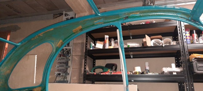 Mon beau-père est déjà venu chercher du boulot comme il n'a rien fait aujourd'hui, il ma emporté la demi-baie de pare-brise qui sera changée et la charnière du capot qu'il doit adapter pour la repointer dessus.