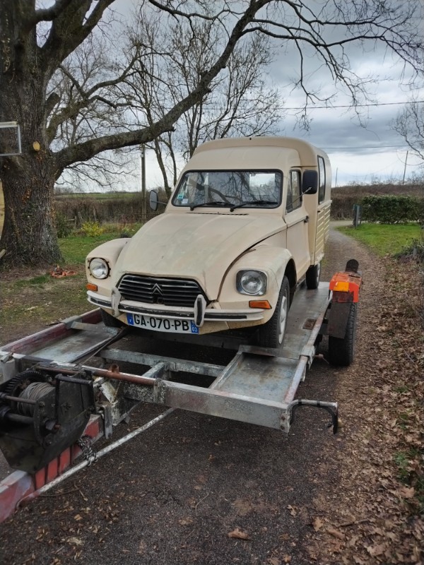 Chose que j’avais pas remarqué avant de prendre la photo des roues dans la remorque, l’immatriculation de ma 2cv commence par AK. Dommage que ce ne soit l’immatriculation de l’acadiane.