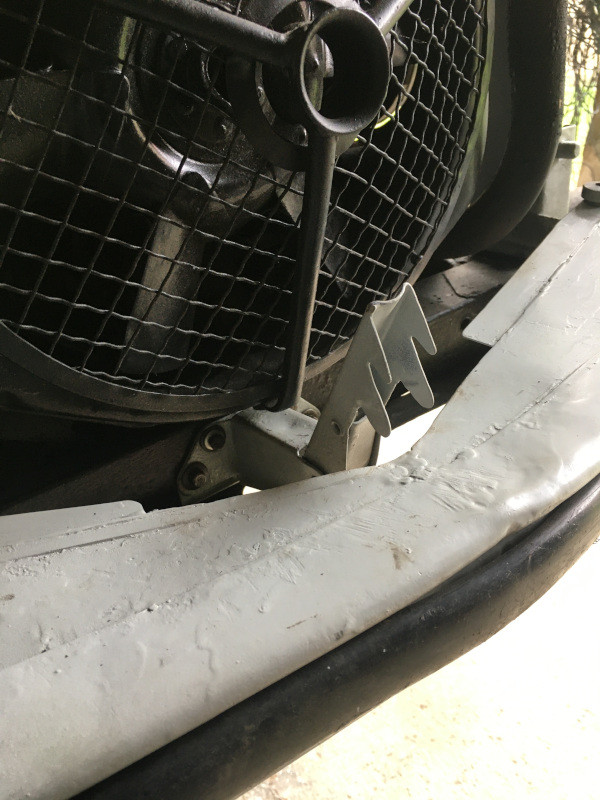 J'ai commencé par faire deux repères à la peinture blanche pour repérer le point d'allumage et flasher avec la lampe stroboscopique : J'ai aussi posé la serrure de capot, modifiée "à ma façon" : Il faut tirer le levier en prenant la butée entre pouce et index pour ouvrir : Bon, encore du travail en perspective, la tubulure d'échappement est fendue ! Cette fissure est apparue après l'échauffement de la tubulure, malgré le serrage de ses écrous au couple... Il y a encore ce problème de surtension à régler.