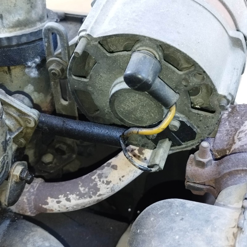 Bonjour je viens de lire vos messages la tension délivrée par l'alternateur doit être entre 12,5 et 14,5 Volts si c'est pas ça il faut voir le régulateur ou la batterie,si elle à bouilli les plaques sont ondulées et elle est HS l'alternateur n'a que deux fils le gros jaune plus venant de la batterie le petit fil gris cosse femelle isolée va au régulateur la masse se faisant toujours par le chassis ou le moteur il doit y avoir un gros fil noir fixé sur le dessus de la boite de vitesses,il n'y a pas de régulateur incorporé à l'alternateur si tu débranches le fil d'excitation l'alternateur ne débite plus rien et ta batterie ne reçevra plus de courant,ne bouillira plus mais tu ne pourras pas rouler de nuit ni trés longtemps.Ce sera plus facile de débrancher l'excitation que d'enlever la courroie d'alternateur pour le même résultat.Tu dois avoir une plaque en métal sur le cul de l'alternateur qui donne la tension en volts et la puissance en ampères ça se situe entre 25 et 30 Ampères sur les 2 cv il n'y avait pas d'option de lunette arrière dégivrante donc tu dois avoir 30 A.La mesure de la tension se fait phares et autres consommateurs allumés à 2000 tours moteurs et se situer autour de 13,5V.Préfère un régulateur electronique tu peux même le mettre dans l'emplacement du vieux ça ne se voit pas.