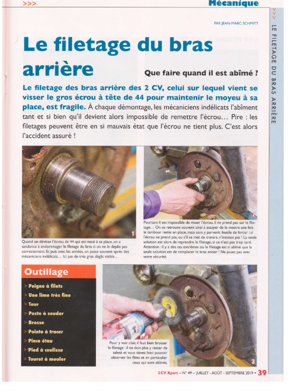 j'ai foiré le pas de vis de la fusée en remontant l'écrou de tambour Ar. mis à part refaire le pas de vis avec une filière je n'ai pas beaucoup d'idée.