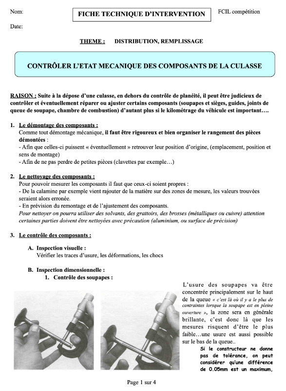 une fois démontées et déshabillées des pièces qui les constituent : culbuteurs et leurs axes, soupapes, il est capital de contrôler les sièges de soupapes ( ça tu l'as déjà fait !) les portées des soupapes (tu as dû les contrôler) et ,très important le jeu dans les guides de soupapes...tu peux mettre des soupapes neuves, des joints neufs, si tes guides ont du jeu, ils seront le maillon faible ...