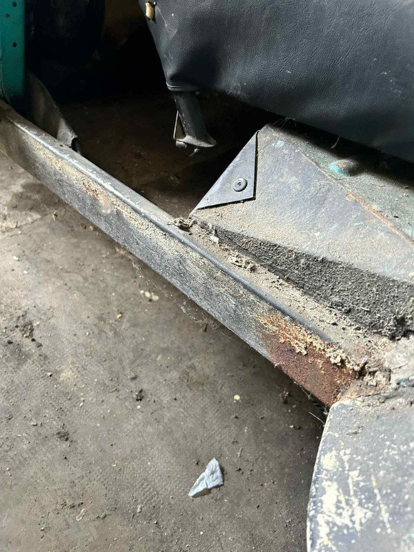 C'est parti pour la sortie de grange de cette 2CV, voiture qui dors dans une grange depuis 1998. la voiture est en très mauvaise chassis, planchers réparé de manière hasardeuse, à l'instar de la fixation des sièges avant, un tasseau de bois :euh: (provenant d'un modèle autre que 2CV, mais je n'ai pas réussi à trouver). On veut faire ça bien donc on reprend tout à zéro, chassis neufs, planchers neufs etc.