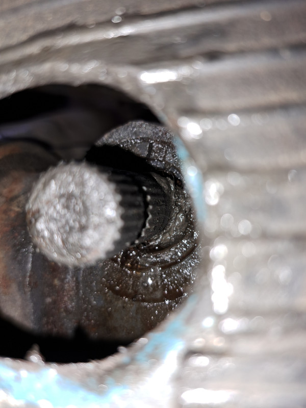 L'état des canelures en sortie du boitier de direction me semble bon. Je crois que le pb vient de la colonne. Je pense qu'il doit y avoir deux rangées de "dents" pour se caler sur les deux rangées de canelures de sortie de boitier. Or chez moi l'extremité intérieur de la colonne est lisse, ou quasi...