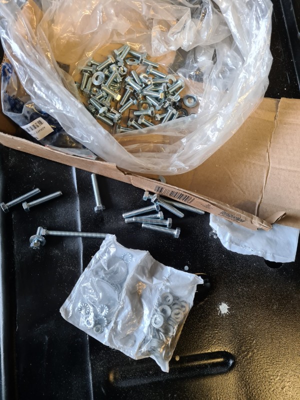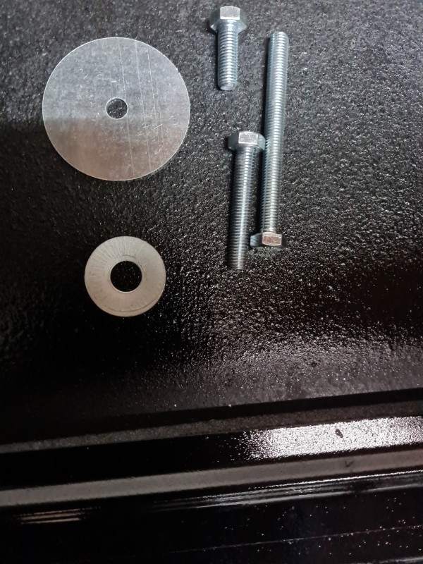 cdt pour info 2 grandes vis et rondelles extra large, 2 vis moyenne et rondelles larges et plusieurs petites vis.